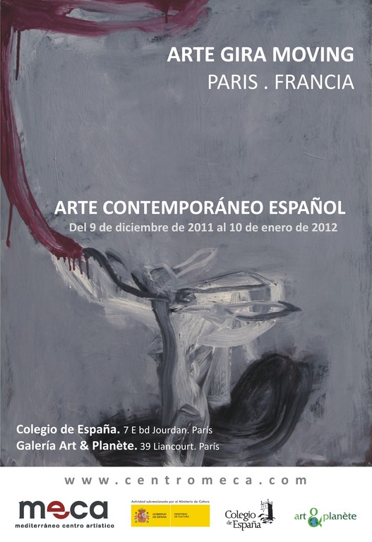 En su empeño continuo de promover tanto a nivel nacional e Internacional el Arte Contemporáneo que se hace en España, Fernando Barrionuevo, director de MECA Mediterráneo Centro Artístico ha comisariado treinta y cuatro obras de diecisiete artistas para participar en la exposición colectiva Arte Contemporáneo Español, enmarcada dentro de ARTE GIRA MOVING y que se celebrará desde el 9 de diciembre de 2011 hasta el 10 de enero de 2012, en dos espacios expositivos en la ciudad deParís, concretamente en la Sala de Exposiciones del Colegio de España y en la Galería Art & Planète.
