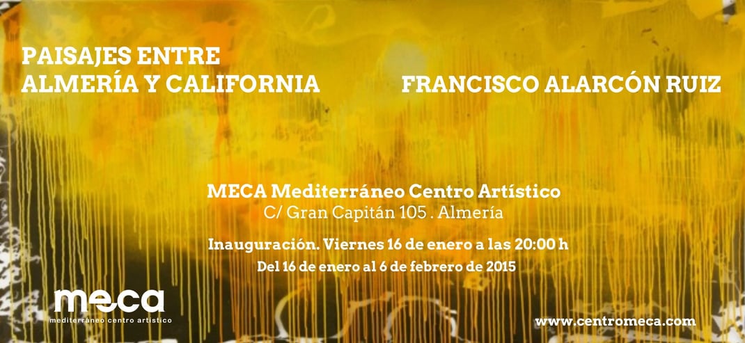 MECA Mediterráneo Centro Artístico comienza su programación de 2015 con la exposición Paisajes entre Almería y California del artista Francisco Alarcón Ruiz. La muestra comisariada por Fernando Barrionuevo, supone la primera exposición que este artista almeriense residente en Los Ángeles realiza en España.