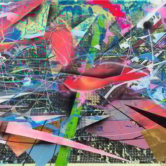 Para las pinturas esculpidas, o según llama el artista: Escarbados, Alarcón empieza pintando capas de pintura acrílica y