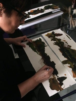 Sí, he renunciado durante muchos años. Me casé muy joven, 19 años. Tengo dos hijas y una vida de mudanzas por motivos laborales. Lo que hace difícil poder desarrollar una carrera profesional. A pesar de todo, hice diseño de interiores y pude realizar proyectos de locales comerciales durante años, de una manera liberal y pudiendo compaginar vida laboral y familiar. Cuando llegué a Granada hace 20 años, empezó todo y todo ha cambiado y creo que me encuentro en un momento muy ilusionante de mi carrera pictórica. Tengo tiempo y libertad.