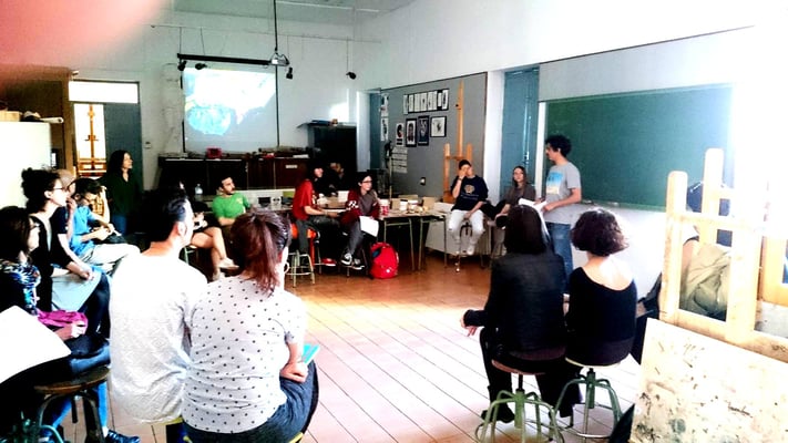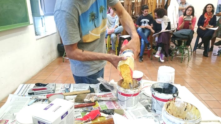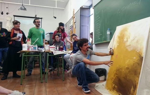 La práctica del taller trata de ofrecer al alumnado una pequeña iniciación "autogestionada" en la pintura abstracta; desde el montaje del bastidor, la imprimación del lienzo o elaboración de acrílicos, hasta el desarrollo de una obra plástica enmarcada en la tradición expresionista.