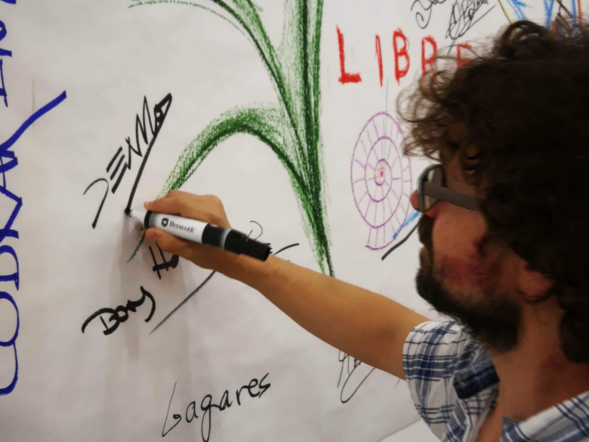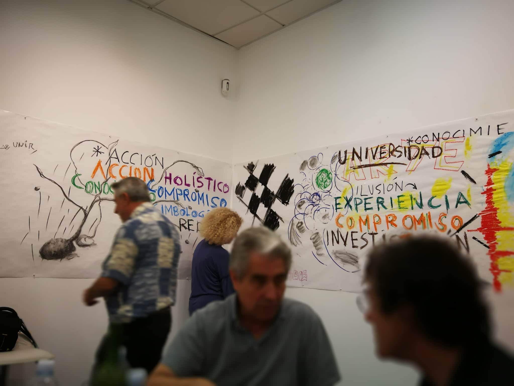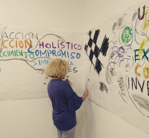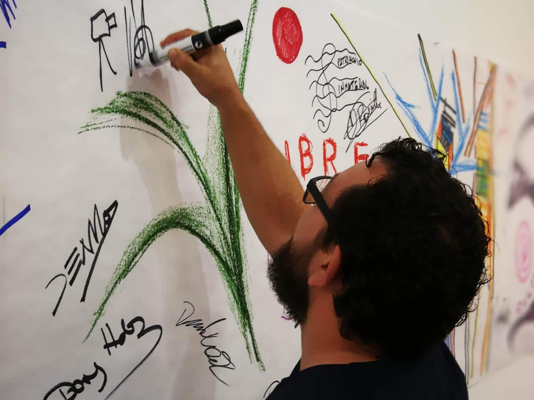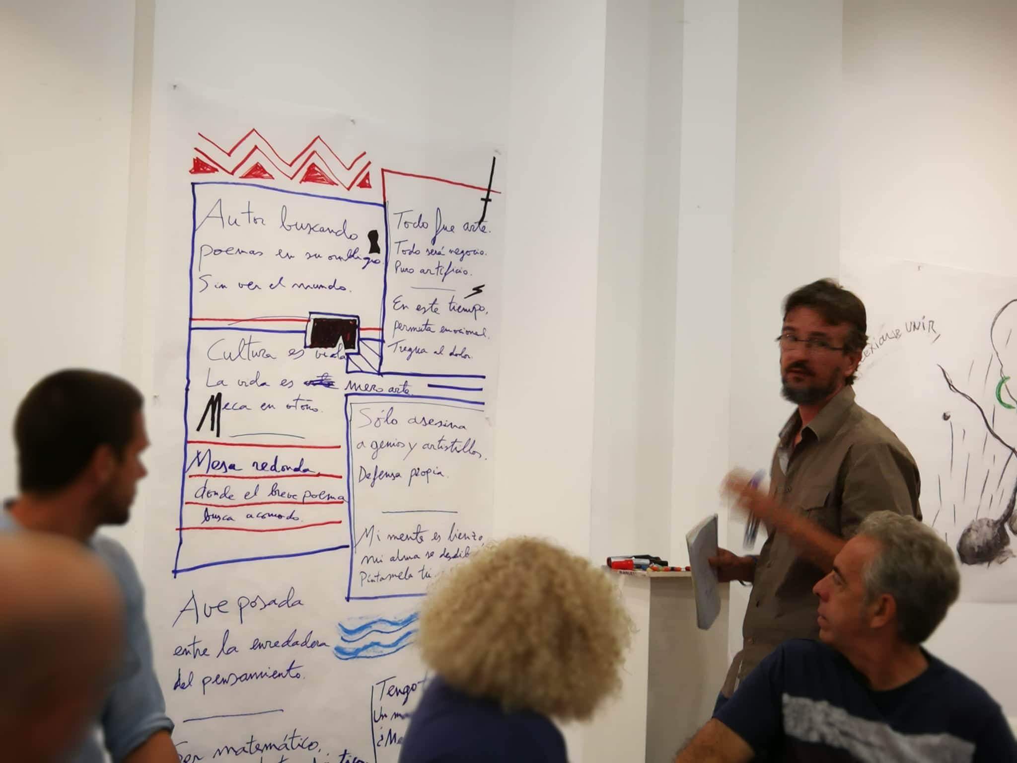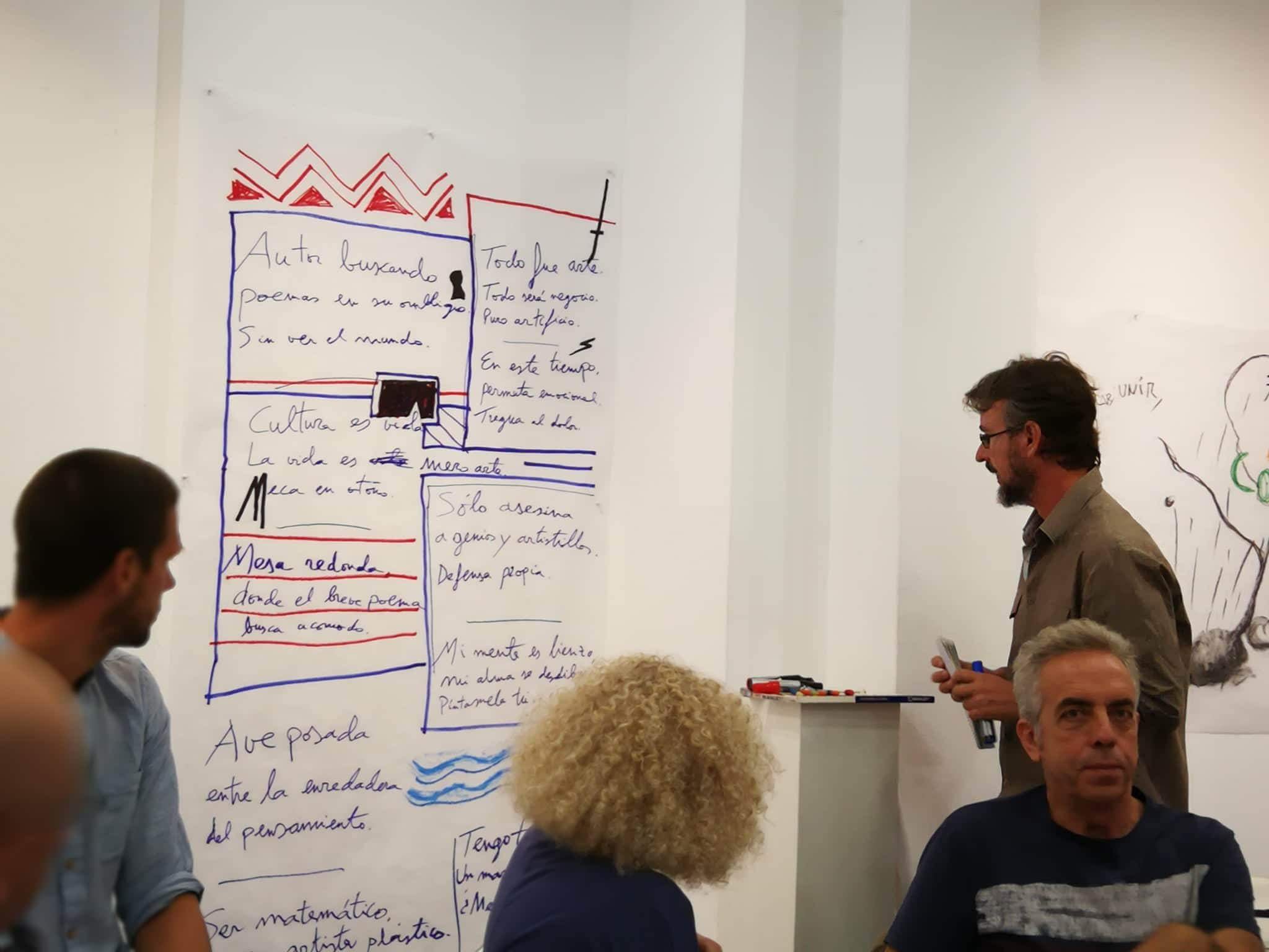 Mediante este taller abierto, los artistas invitados diseñarán a modo de relato visual todos los contenidos que se desarrollen durante la jornada en las diferentes mesas redondas. A través de la visualización de los contenidos en tiempo real, se busca la interacción de todos los participantes y el público asistente. La sala MECA se convierte así en un taller experiencial adoptando la forma de un gran lienzo que se irá nutriendo de todos los contenidos como fuente de inspiración. Los artistas diseñadores se convierten así en intérpretes de las diferentes realidades que allí se expongan.