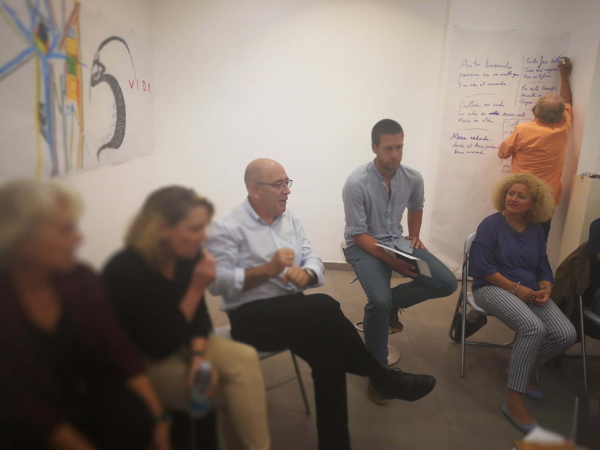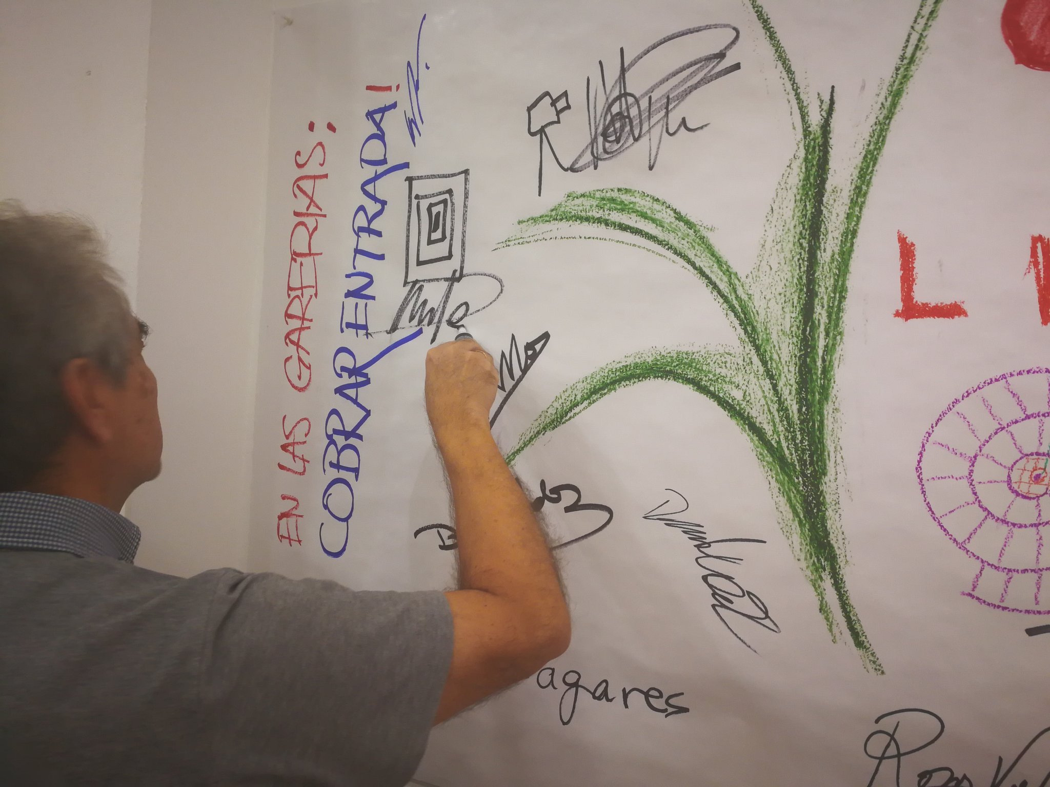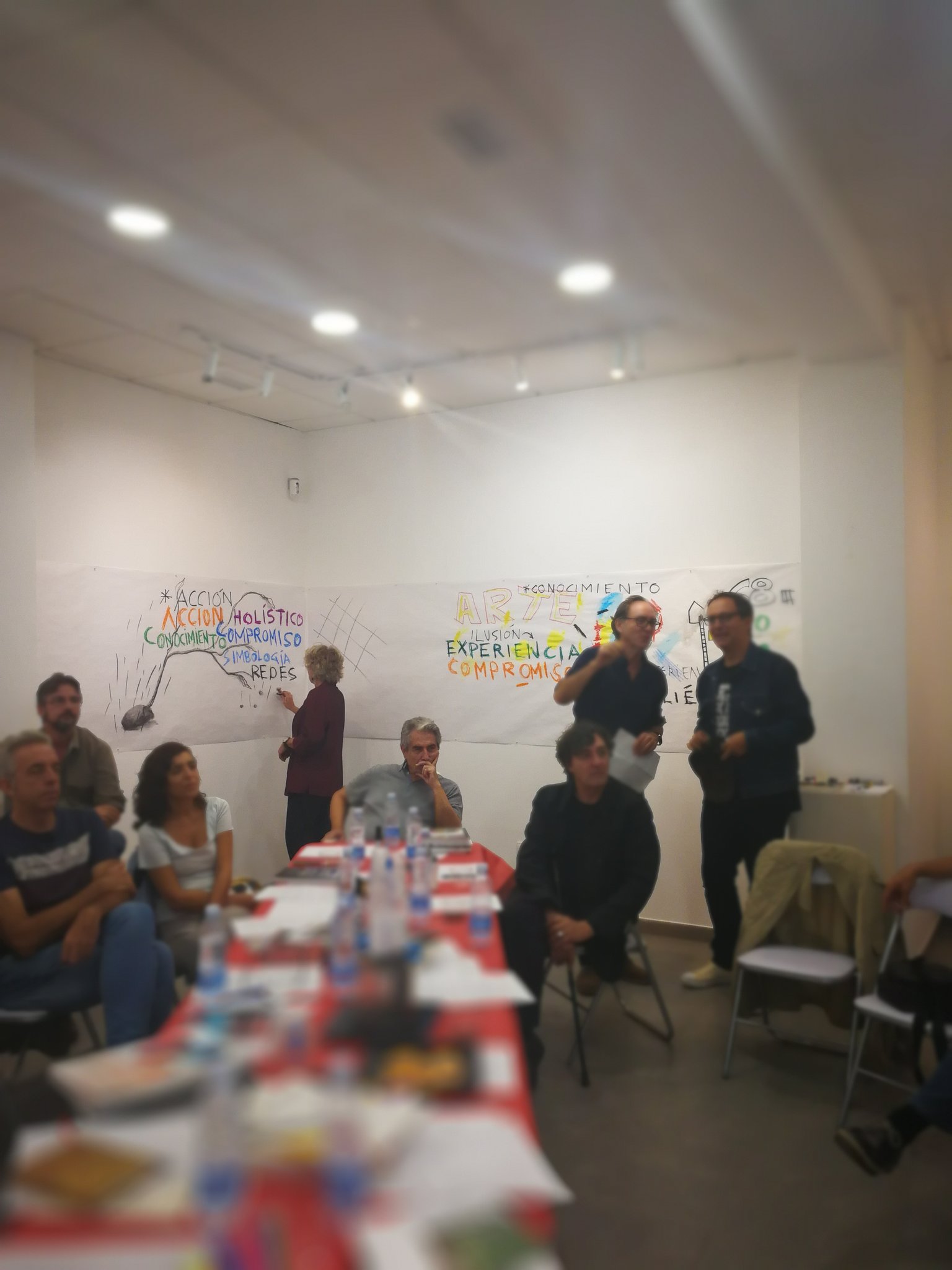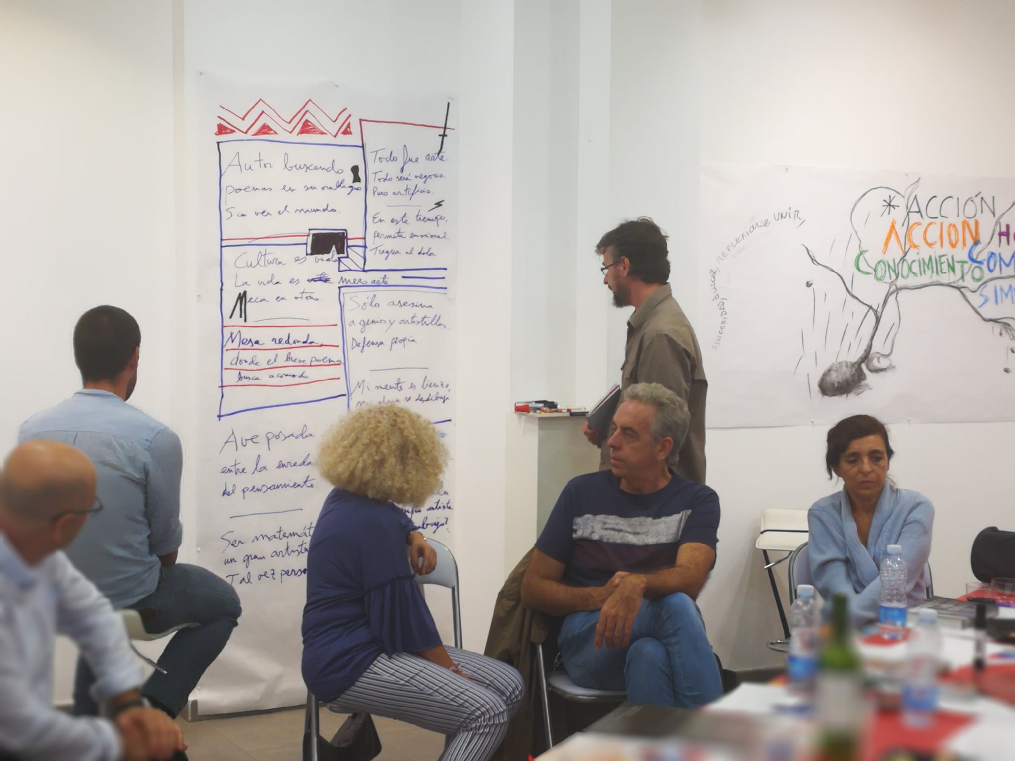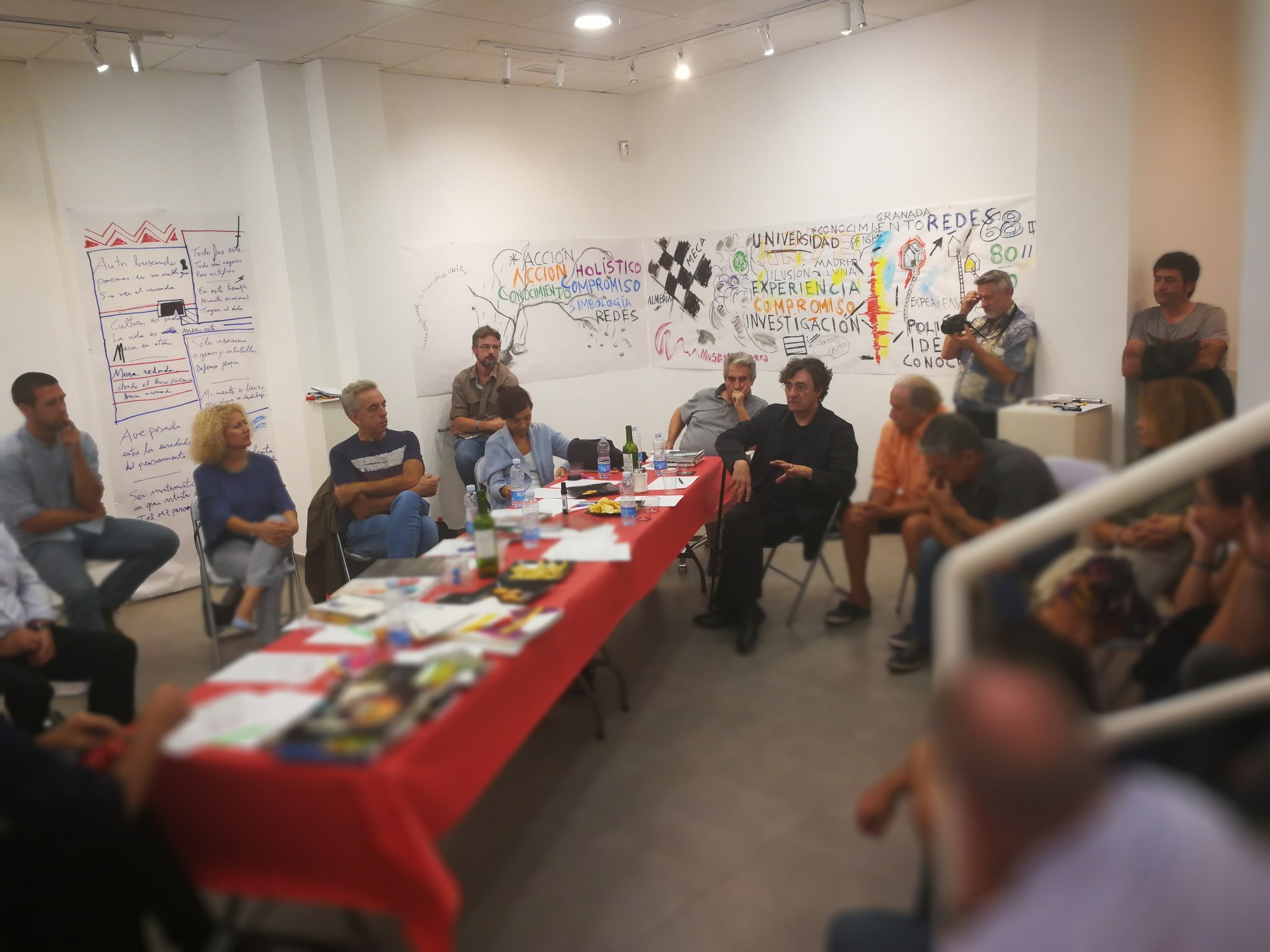 Mediante este taller abierto, los artistas invitados diseñarán a modo de relato visual todos los contenidos que se desarrollen durante la jornada en las diferentes mesas redondas. A través de la visualización de los contenidos en tiempo real, se busca la interacción de todos los participantes y el público asistente. La sala MECA se convierte así en un taller experiencial adoptando la forma de un gran lienzo que se irá nutriendo de todos los contenidos como fuente de inspiración. Los artistas diseñadores se convierten así en intérpretes de las diferentes realidades que allí se expongan.