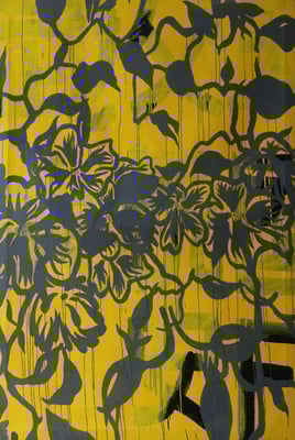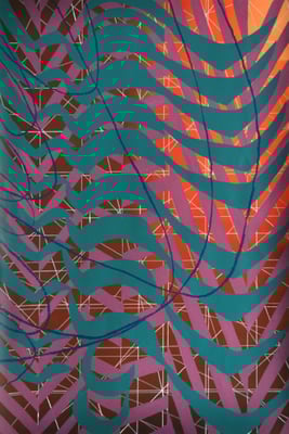 Además tomo pinceladas del Constructivismo, Expresionismo Abstracto, Pop, Op, Decorativo, Bauhaus etc que combino en una abstracción geométrica con el fin de lograr un lenguaje visual abstracto que describe el contenido narrativo. Como podemos ver en las obras “Él jardín de Laozi, serie8”, “Él jardín de Chino” u “Hay noches rosas”.