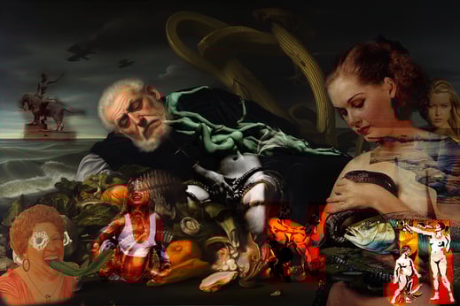 De las páginas de "La República" de Platón emerge Glauco, un enigmático personaje cuyo origen se remonta a las profundidades del misterioso océano. Representado como una figura que surge del mar, Glauco personifica la dualidad entre lo humano y lo divino, simbolizando la eterna búsqueda del alma en un mundo lleno de desafíos y contradicciones. Su cuerpo, envuelto en una amalgama de objetos marinos, lo transforma en una criatura híbrida que despierta nuestra curiosidad y nos invita a reflexionar sobre la naturaleza misma de la humanidad.