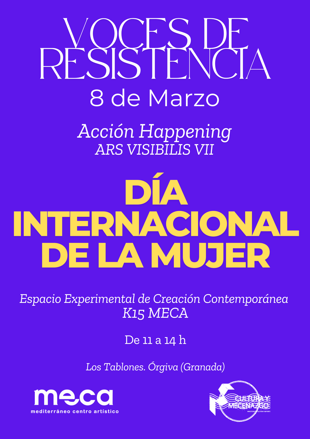 El 8 de marzo, Día Internacional de la Mujer, el Espacio Experimental de Creación Contemporánea K15 MECA se convertirá en un campo de acción donde la memoria y la ausencia se materializan a través de la luz, la palabra y el sonido. "Voces de resistencia" es un happening concebido por Rosa Muñoz Bustamante y Fernando Barrionuevo, una intervención expansiva que se despliega a lo largo de toda la jornada, transformando el espacio en un lugar de visibilización y confrontación.
