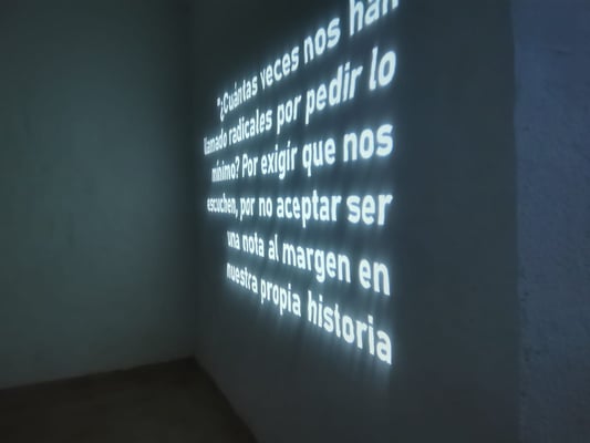 Proyecciones de siluetas en gran formato emergen y desaparecen en un juego de luces y sombras. Figuras de mujeres sin rostro, sin identidad reconocida, cuerpos espectrales que han existido, pero no han sido vistas. En la penumbra de la sala, las imágenes fluctúan entre la presencia y la desaparición, recordándonos que la historia de las mujeres es una historia de persistencia contra el olvido.