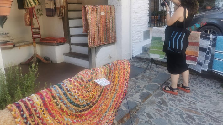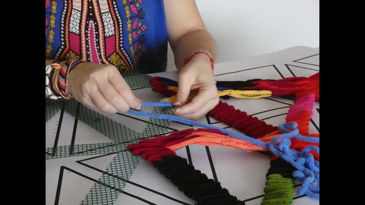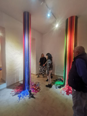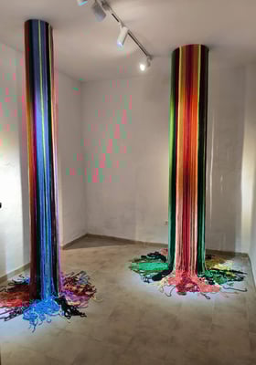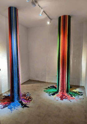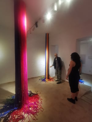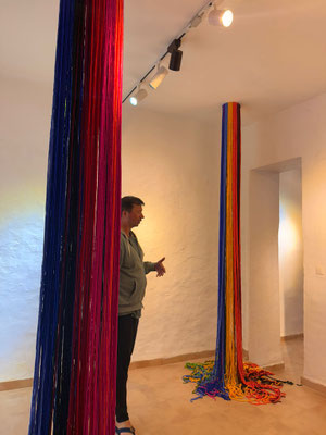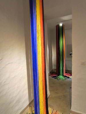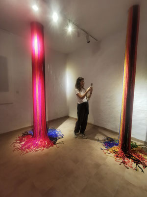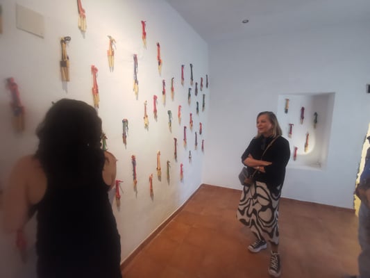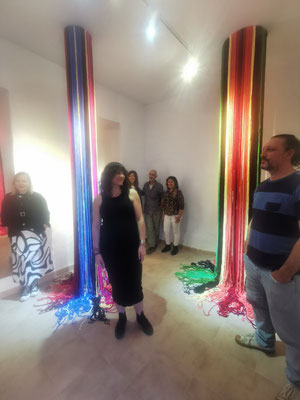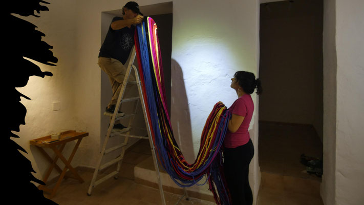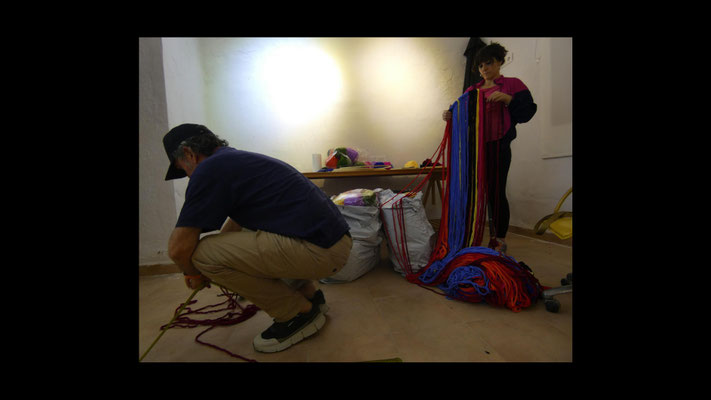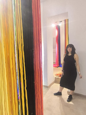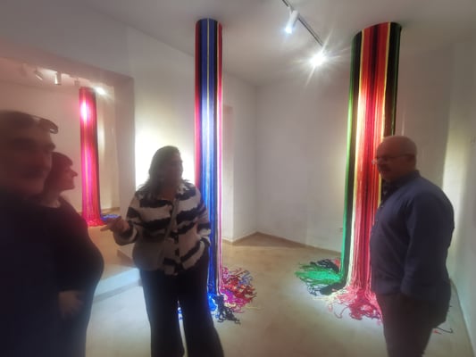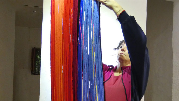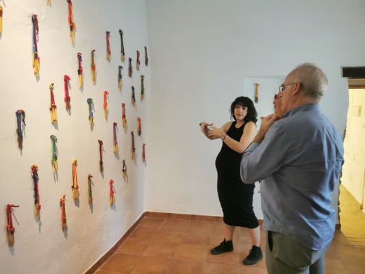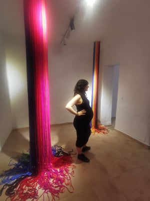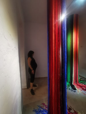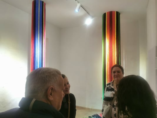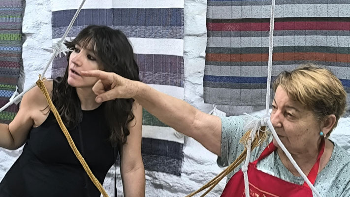 La artista ha desarrollado también un diálogo con tejedoras locales de la Alpujarra granadina, con quienes ha compartido conocimientos técnicos y simbólicos sobre los modos de producción artesanal del tejido. Este intercambio ha enriquecido su propuesta y ha permitido establecer un puente entre la tradición y la contemporaneidad, entre la memoria colectiva y la mirada individual del artista.