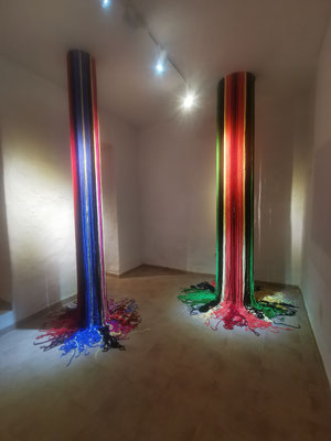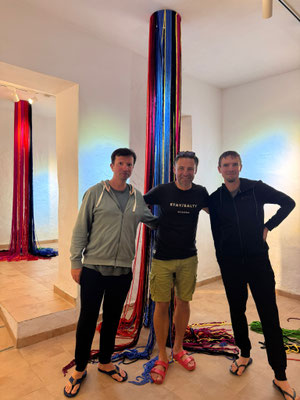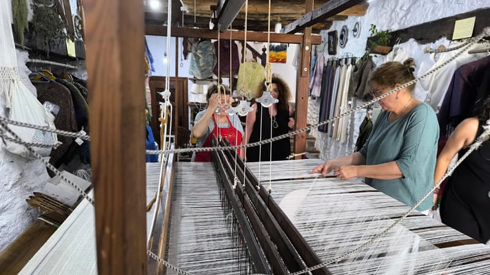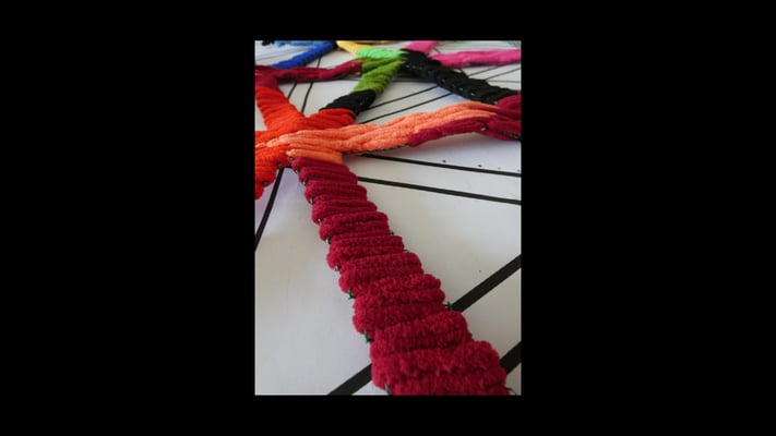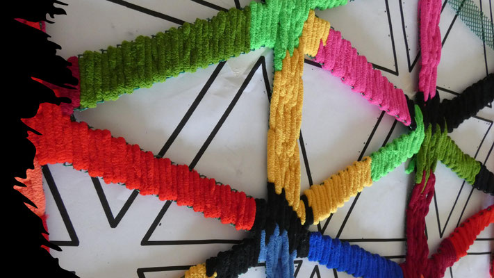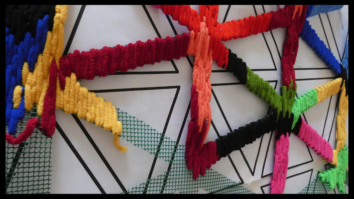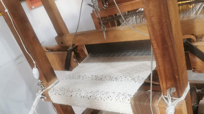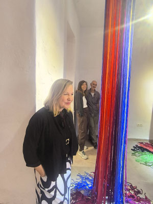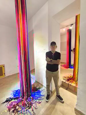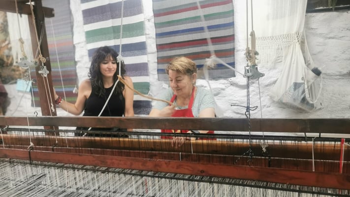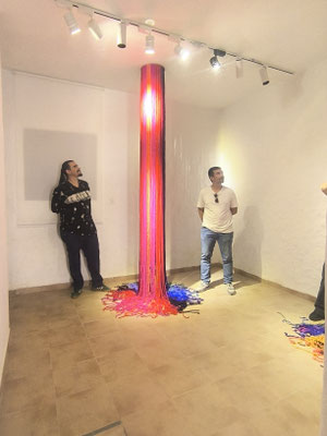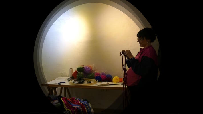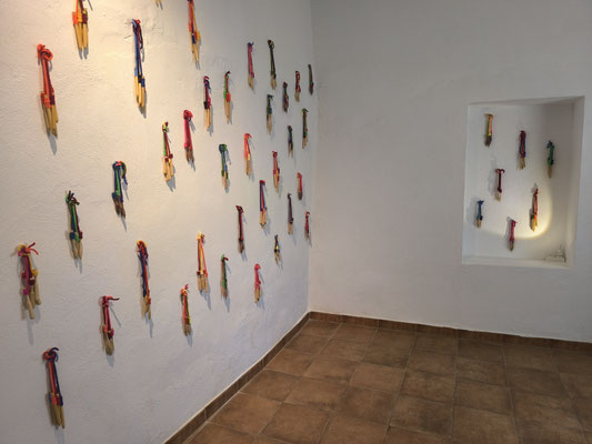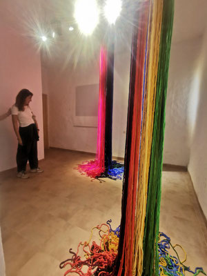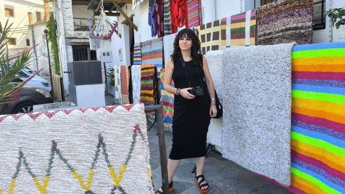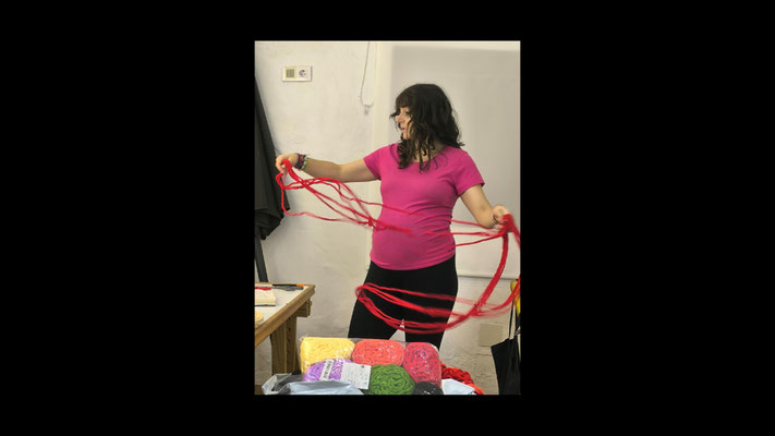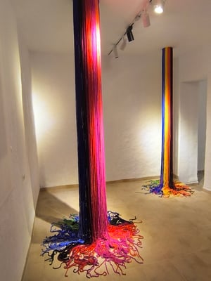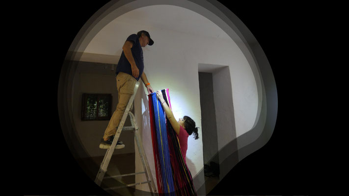 La artista ha desarrollado también un diálogo con tejedoras locales de la Alpujarra granadina, con quienes ha compartido conocimientos técnicos y simbólicos sobre los modos de producción artesanal del tejido. Este intercambio ha enriquecido su propuesta y ha permitido establecer un puente entre la tradición y la contemporaneidad, entre la memoria colectiva y la mirada individual del artista.