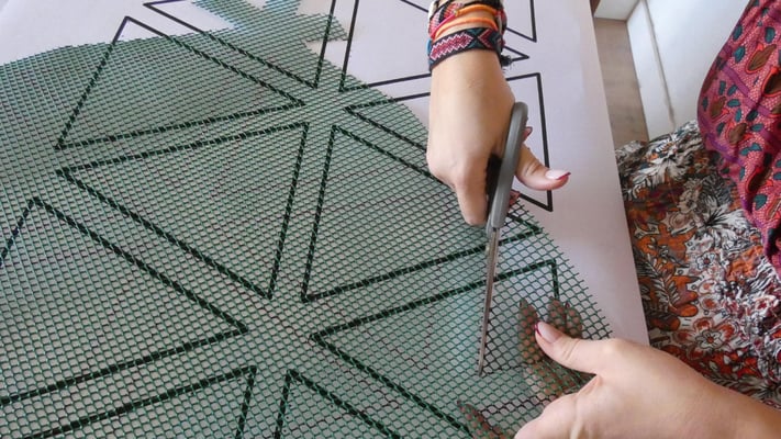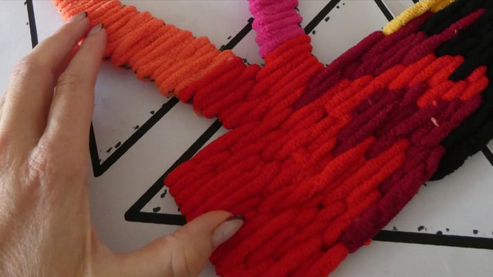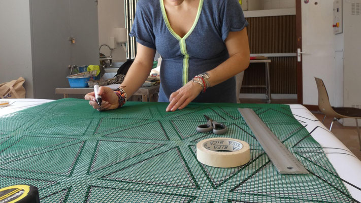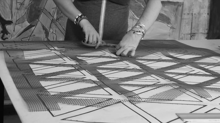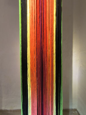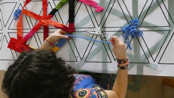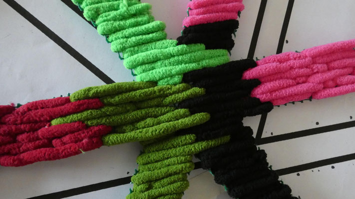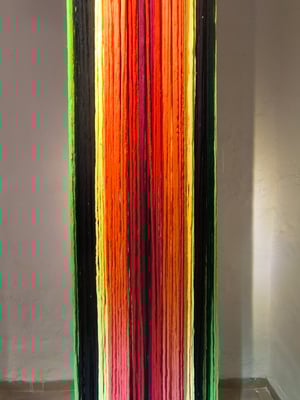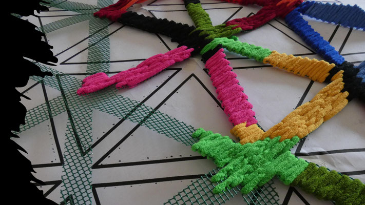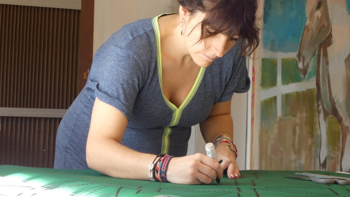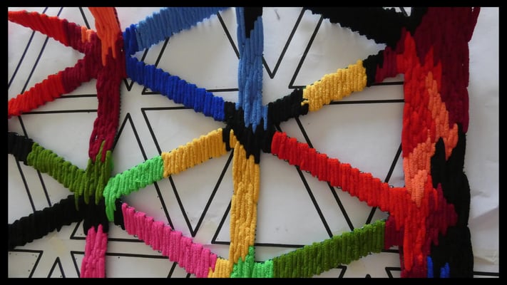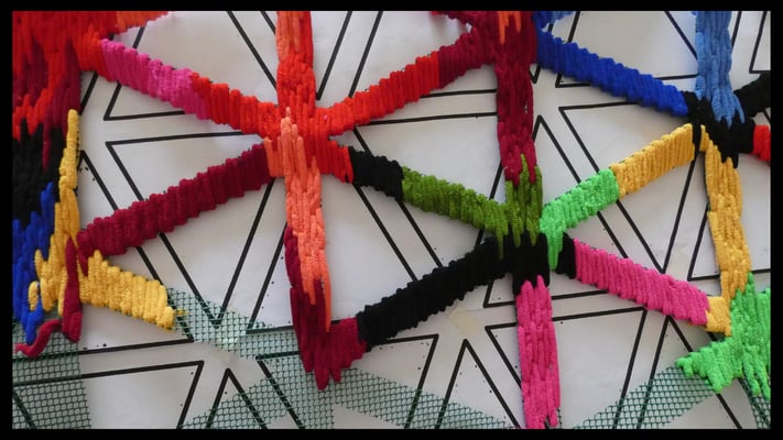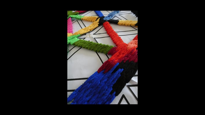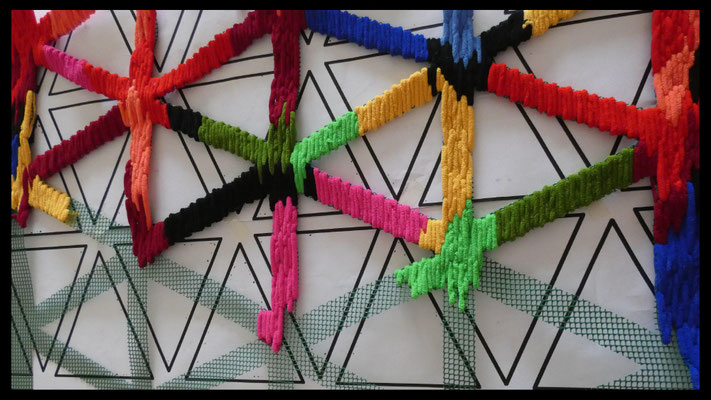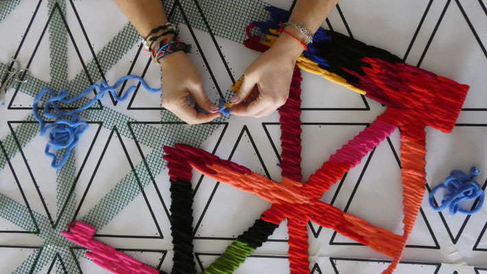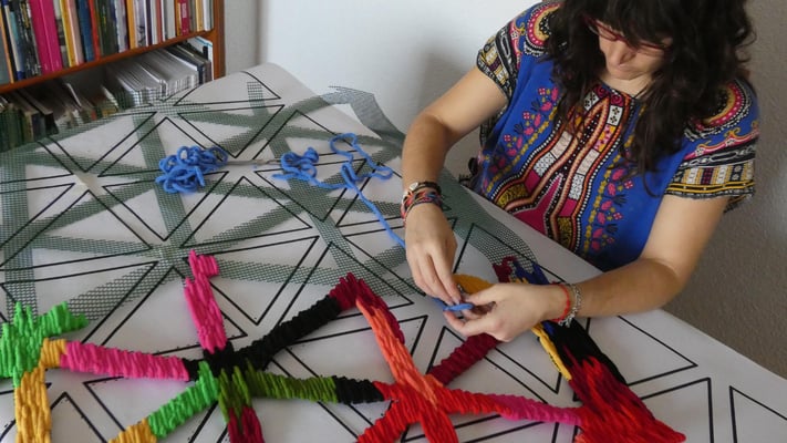 Su trabajo parte del estudio de las jarapas tradicionales alpujarreñas, una de las manifestaciones textiles más representativas del patrimonio cultural de la región. A partir de esta tradición, la artista ha desarrollado un proceso de reinterpretación contemporánea que convierte el tejido en una forma de pensamiento visual y espacial.